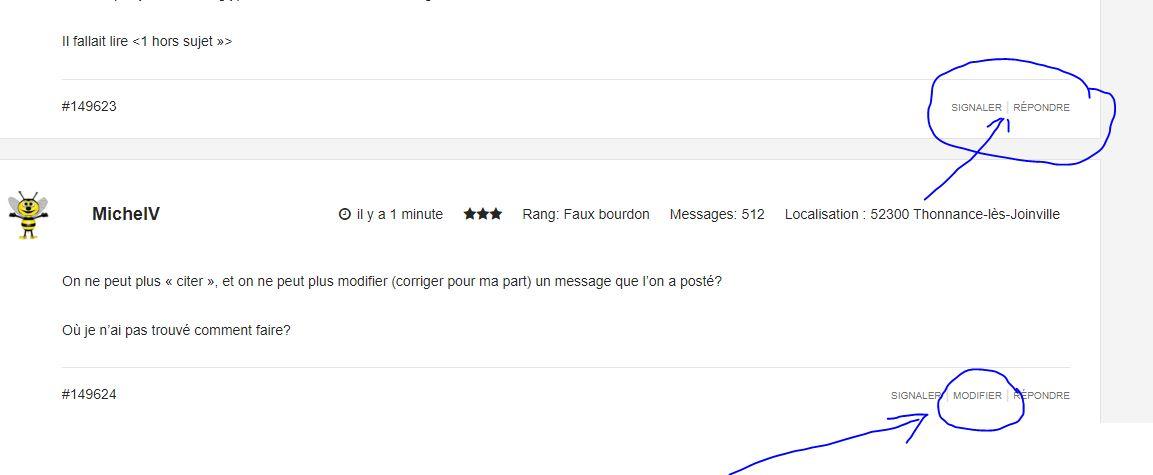 On ne peut plus “citer”, et on ne peut plus modifier (corriger pour ma part) un message que l’on a posté?