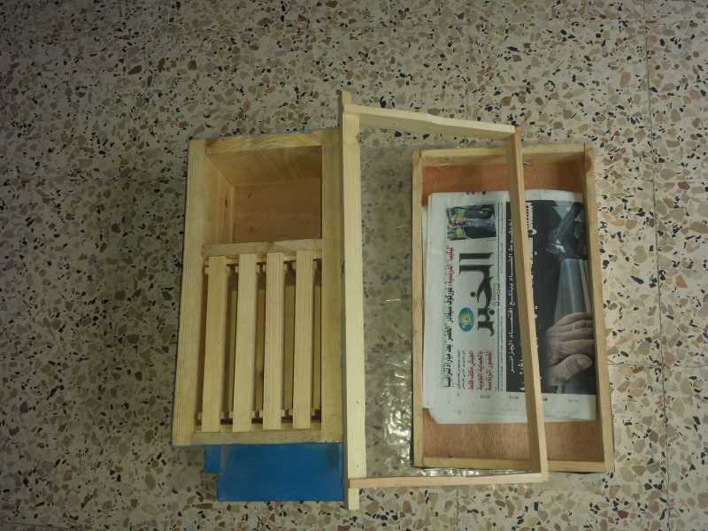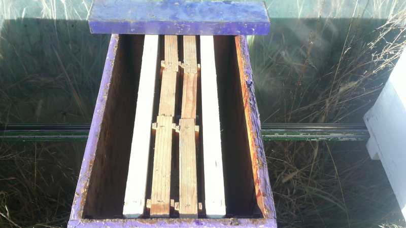 J’ai créé mes nucléis dans des haussettes de ruchettes Dadant 5 cadres, avec un plancher grillagé et un toit classique de ruchette.