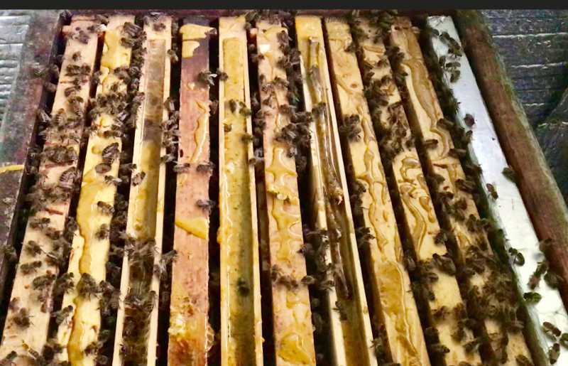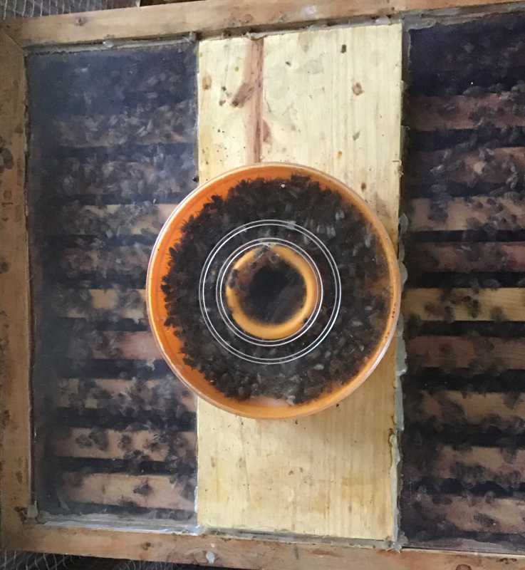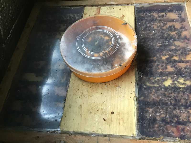 Les plus faibles trois ne montaient pas dans les nourrisseurs prendre le candi , les autres nikel , j’avais à deux reprises donner des protéines deux cuillères a soupe ( miel , pollen , levure ) pour pas perdre j’ai enlevé les nourrisseurs puis après le coup de froid j’ai remis les nourrisseurs avec la cheminée bouché de candi elles l’ont grignoté et sont maintenant dans les nourrisseurs le reste du cheptel n’a plus de candi , pas de perte de poids depuis la première pesée , le pollen rentre encore ( vu sur les plateaux ) les zaza sont dans les cheminées des nourrisseurs ou dedans ( vide ) se qui veut dire que elles ne sont pas en grappe et étendue ( comme la photo sous l’isolation )