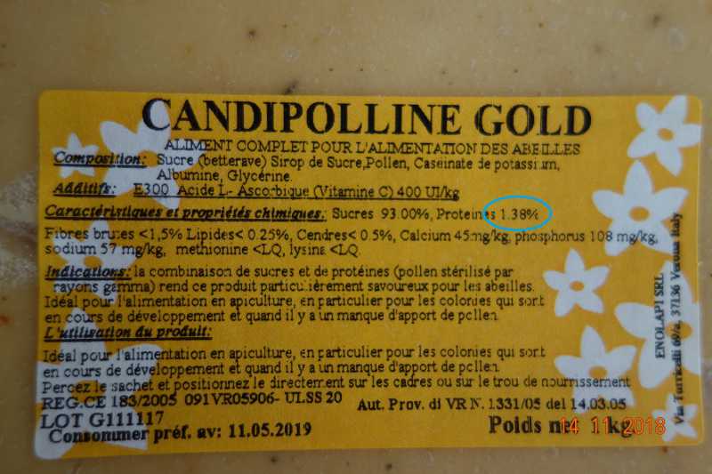 – en été sans les hausses: si besoin, c’est du sirop plus ou moins épais selon les températures et en fonction des ressources environnantes. Ex, cet été, sans miellé et avec des températures très chaudes c’est du 50/50, si les températures sont moins chaudes j’épaissis mon sirop, sachant que les ressources en pollen sont bonnes.– en septembre j’évalue 1 par 1 mes caisses (car je n’ai pas encore pu équilibrer mon rucher d’où des besoins différents) et j’adapte mon nourrissage pour l’hiver en apportant une pâte facilement assimilable pour la saison avec un apport en protéine car il y a du couvain, pour d’autres je le donne en octobre. exemple, cet année l’été indien a permis de bonne provisions de pollen et si, comme l’année dernière, je n’est pas d’arrêt de ponte sur certaines caisses, le besoin en protéine va se faire sentir et plus l’hiver est rude moins j’aurais besoin de protéine (arrêt de ponte) et en fonction des besoin, j’adapterai avec une pâte type candimiel (fin janvier/début févier)