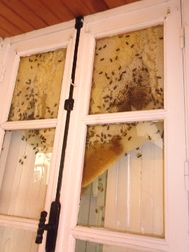 l’entrée d’origine.le plus gros de la colonie est orphelin et refait une reine.