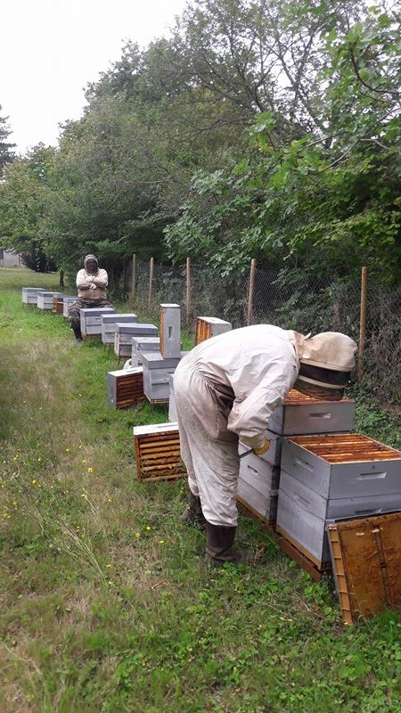 mais c etait sans compter que mes filles sont des battantes et mes gendres sont super aussi et la recolte de miel a ete assuré sans problemes !!!