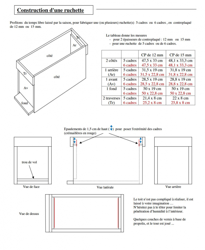 Je recherche des plans pour une ruchette Dadant 6 cadres, avec des dimensions universelles pour pouvoir éventuellement acheter des haussettes /couvre cadre /nourrisseurs dans le commerce.