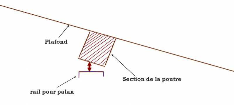 J’ai fait 1 petit dessin ci-dessous.Le but de la manœuvre est de trouver la possibilité de fixer un rail en dessous de cette poutre pour y faire coulisser un palan.