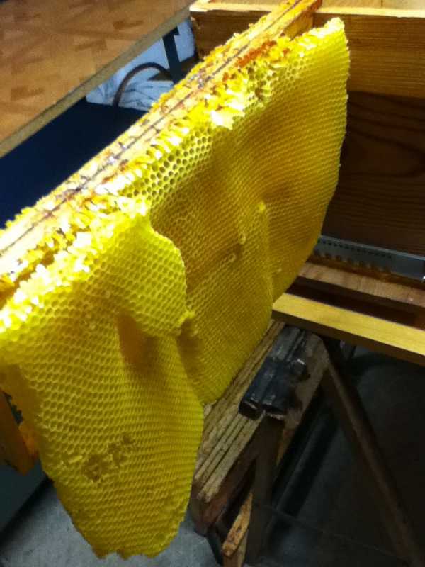 exemple ici d’un ruche vérifiée seulement le Week-end : aaaaargh en moins d’une semaine déjà obligé de massacrer les rayons construits dans les vides