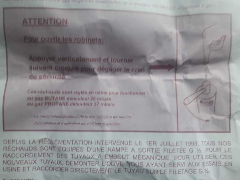 Chez moi, je n’ai que du butane. Le détenteur et le tripatte sont tout ce qui est de plus classique. Je crois d’ailleurs n’avoir vu qu’un seul modèle, que ce soit à la grande surface, au magasin bricolage ou au gamm vert ; le tripatte est fourni avec les injecteurs pour le butane et ceux avec le propane. J’ai suivi scrupuleusement le mode d’emploi fourni et j’ai tenté le réglage comme indiqué avec les trois boulons sans résultat probant si ce n’est de me brûler les doigts. Ma seule satisfaction, à défaut de solution et à travers ce post, est de voir que je ne suis pas le seul. Il faut voir l’état du stérilisateur et surtout de la bassine en inox quand j’ai fait le confit d’oie.Bonjour,