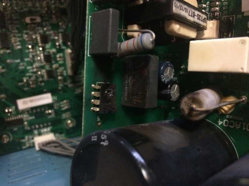 Regerde de ce coté là sait-on jamais…………Je me suis lancé dans le démontage et vérification. Ça serait le variateur HS, un composant a grillé sur une carte électronique.