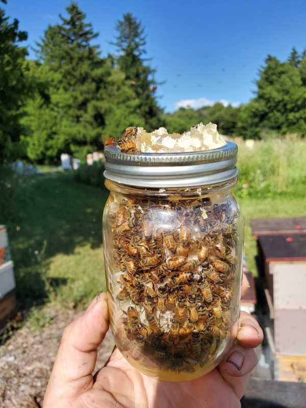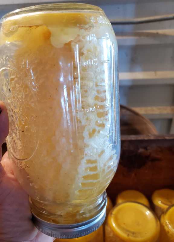 Mon ami Peter a une façon originale de produire son miel avec rayons de cire.