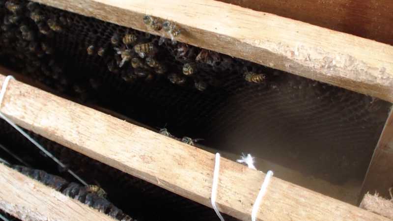 Alors le gros des abeilles est parti assez rapidement genre J+2 je dirais, elles sont allées dans la mangrove, on a passer la journée a les chercher mais sans succès.