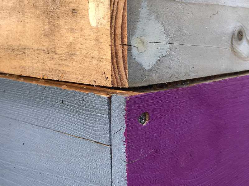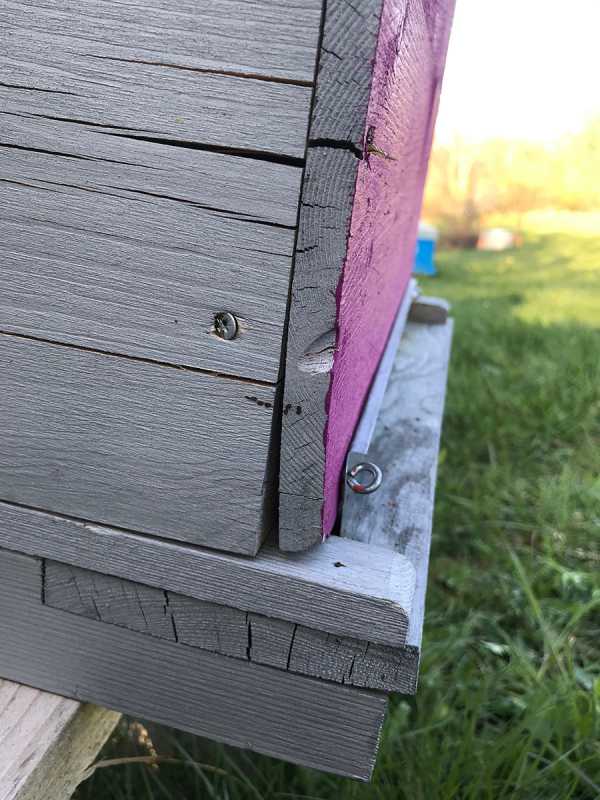 , j’ai toujours monté mes ruches ou fabriquer , toujours un perçage avant le clou ou une vis ( tête fraisée ) + de la colle à bois , puis la peinture ou l’assuré + vernis ( toujours peint trois mois minimum avant usage ) avec trois à quatre couches ( extérieur + bordure )