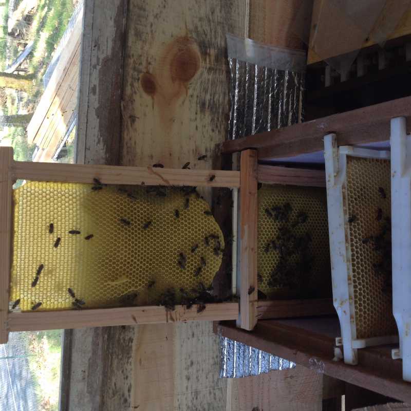 Utilise aussi les cadres par découpe ( deux hausses hauteur de cire 1/2 donc elle étire vers le bas et garde chaleur en haut)