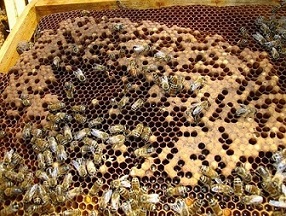 j’ai levé les 3 cadres du centre, et sur la partie avant du cadre, il y avait une zone de 10 x10 cm, sans miel, il y avait un peu de pollen, mais pas du tout de couvain fermé,( je n’ai pas pris le temps de rechercher les oeufs potentiels je souhaitais aller vite);…….. est on en arrêt de ponte?