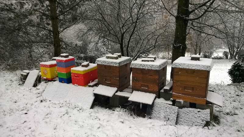 chez nous cet aprèm, plus de 17° au soleil et plein de zaza au travail qui rentrent du beau pollen jaune (sans doute du mimosa qui est en avance). Les ruches sont à 750mt d’altitude haut dessus de Nice.