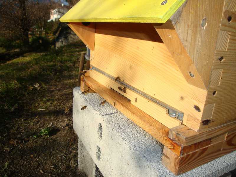 Les plaques ce sont des ardoises. Ca évite l’herbe de pousser et protège des rafales de vent mais bon je vais laisser tomber car j’ai parfois des limaces qui entrent par le trou de vol en hiver