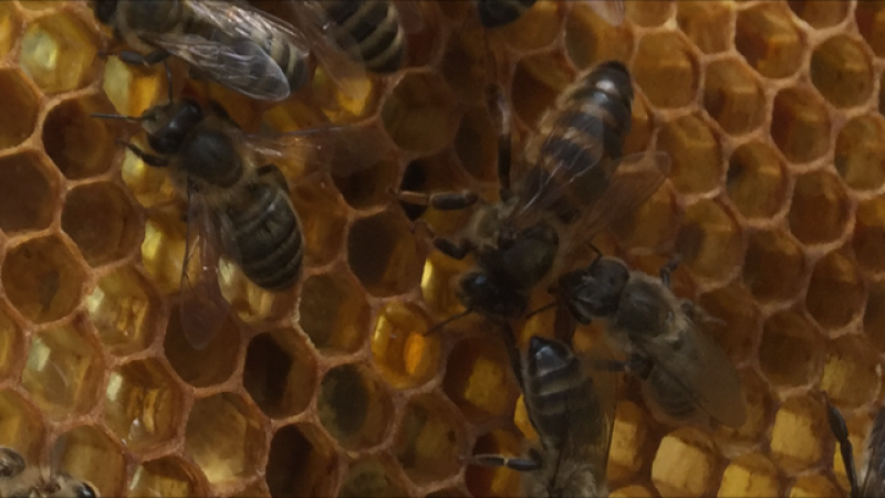 les abeilles sont calment et travaillent bien