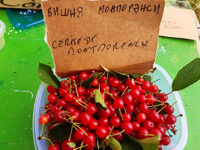 je suis curieux, mais peux tu nous expliquer l’écriture au dessus de la variété de cerises;. au début j’ai cru que tu nous l’avais mis en russeBonjour, en fait je mets aussi les photos sur facebook, une par jour à peu près. J’ai beaucoup d’Ukrainiennes et de Russes qui consultent. C’est pour leur faciliter la tâche que je mets les noms en caractères cyrilliques car les traducteurs automatiques ne fonctionnent pas pour les images.