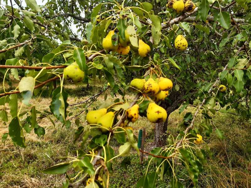 Après les cerises qui avec les différentes variétés ont approvisionné ma table durant deux mois, arrivent les poires avec la variété “Saint-Jean”, pas terrible mais c’est une poire hâtive. En cerises, doivent encore mûrir la griotte de Moissac, la cerise de Montmorency et la belle magnifique., donc des cerises pour une dizaine de jours encore.