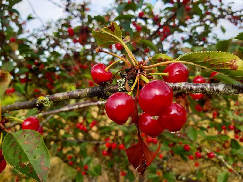 Oui, les dégâts fait par la mouche sont énormes. Heureusement, je ne suis pas arboriculteur producteur de cerises. Certaines variétés semblent plus sensibles que d’autres : Napoléon, Délice de Malicorne, Tonkinoise, Van, Bigarreau hâtif. D’autres sont peu atteintes : Impératrice Eugénie, Reine Hortense, Bigarreau blanc, Sainte-Marie, Badascony. D’autres pas du tout : Noire de Méched, Griotte de Moissac, Guigne noire luisante, Bigarreau gros noir, Cerise de Montmorency (en photo prise ce matin et jointe au post ; elles sont pourtant bien mûres depuis plusieurs jours et vont pourrir en mûrissant sans être attaquées). Les merises sauvages sont aussi toutes attaquées. Par contre les cerises d’un porte-greffe de cerisier qui produit des cerises sauvages ne sont pas attaquées. Ce que j’écris n’est pas scientifique, mais juste le constant fait chez moi par moi en 2020. La cerise attaquée par la mouche pourrit rapidement et est immangeable. Elle laisse un très mauvais goût dans la bouche.