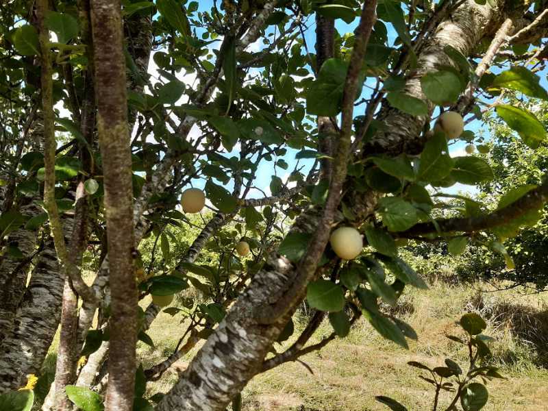 Et voilà les première pommes cuvée 2020 variété “Transparente blanche” originaire de Lettonie. Quand ça va bien, normalement, je fais la jointure avec la pomme tardive d’hiver “Nationale” qui se conserve jusqu’en juin. Mais cette année, il y en a très peu : grosse quantité en 2019, donc presque rien pour cette variété cette année.