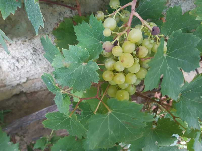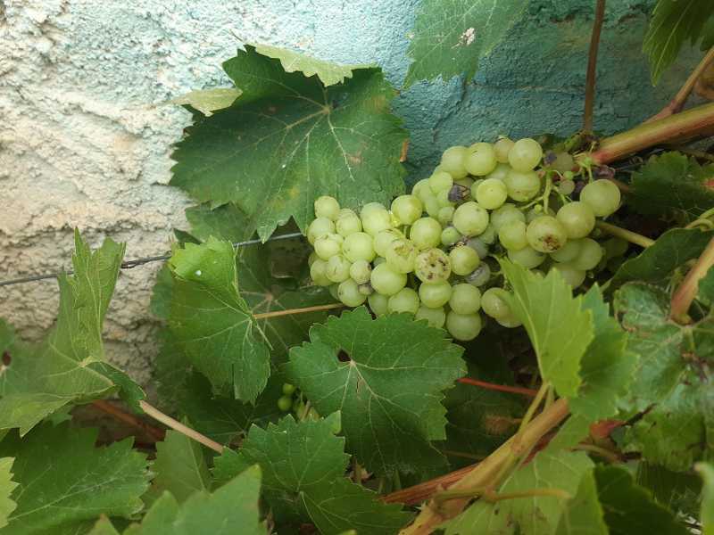 Ma première grappe de raisin 2020, variété Perle de Csaba. Cette variété est particulièrement hâtive, mi-juillet dans la vigne. J’ai fait un essai en la mettant contre un mur de la maison et je gagne une quinzaine de jours. Il vrai que l’année 2020 a été, pour le moment et dans mon canton, particulièrement idyllique au niveau conditions climatiques : ni trop sec, ni trop pluvieux, ni trop chaud, ni trop froid. Bref, une année de rêve. Quant à cette variété originaire de Hongrie, elle ne présente guère d’intérêt en raison de son rendement proche du ridicule. Néanmoins, elle est très bonne et hâtive.