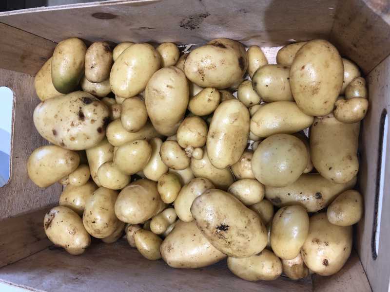 Récolte du jour, patates nouvelles, elles seront cuites à la graisse de canard