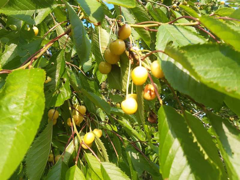 Les cerises “Napoleon” et “Bigarreau blanc” arrivent à maturité.