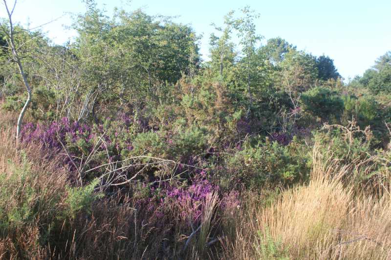 1/3 ajoncs, bruyère, bourdaine, alisier. Je vais couper pas mal d’ajoncs pour réouvrir un peu