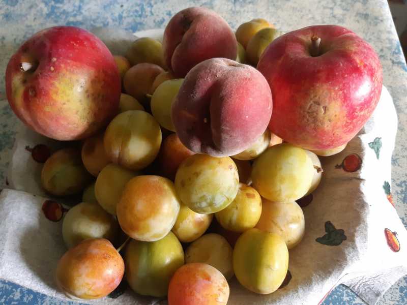 Oui, une année d’abondance ici, et ce n’est que le début. En espérant qu’il n’y aura pas de violents orages. Les branches des arbres ploient sous le poids des fruits et se cassent. La variété de pommes Astrakan rouge et la prune Belle de Louvain arrivent. J’ai récolté aussi une hausse de miel ; la suite en août.
