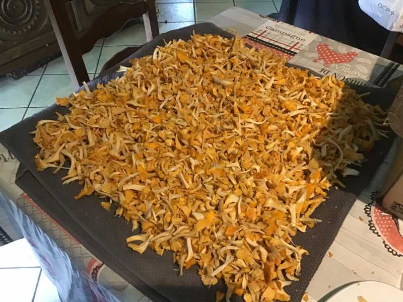 Un petit tour en forêt , une heure de cueillette en famille à trois , et 5 kg de girolles nettoyée