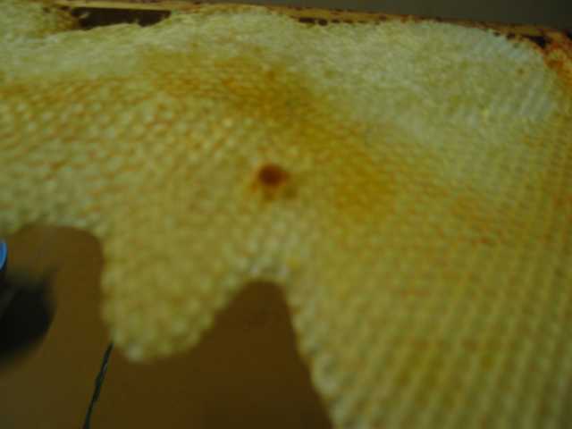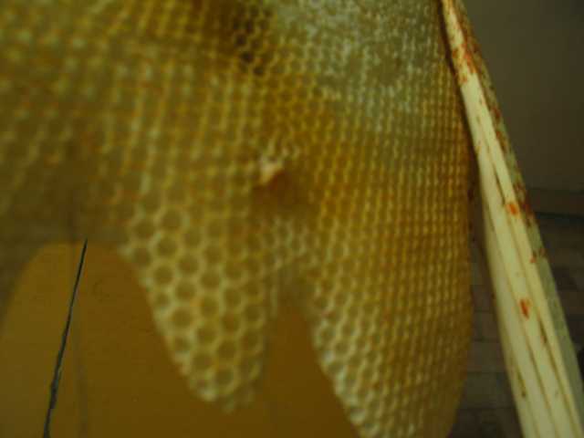 J’ai vu ceci sur un cadre d’une ruche qui est devenu bourdonneuse et que les autres abeilles ont pillé en automne .