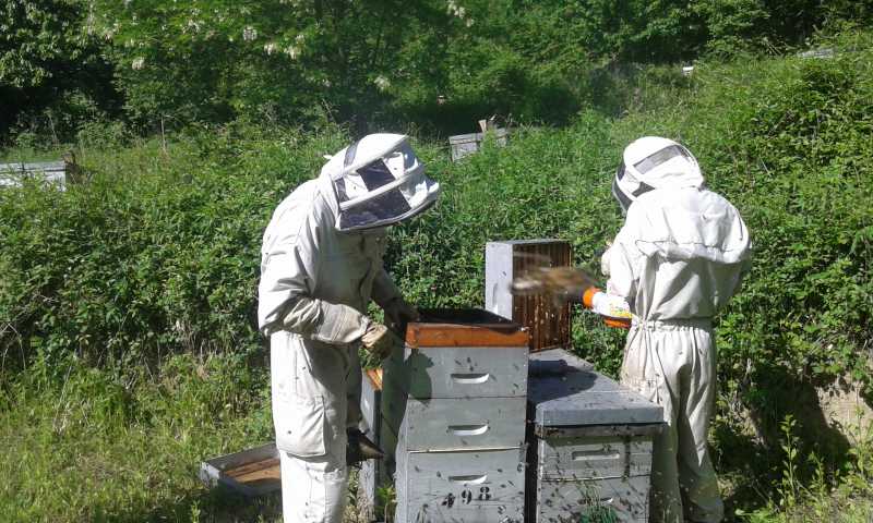 tu peux aussi souffler en commençant par la ruche la plus éloignées du camion. de cette facon, tu évite de passer là ou il y a des abeilles au sol.