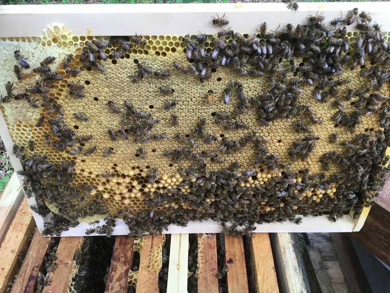 cette année j’ai contrôlé une fois il y a 15 jours quand j’ai fait mon prélèvement . Les reines issues du greffage de l’année dernière sont en productions avec de beaux cadres de couvain et les premières de cette année commencent à bien pondre