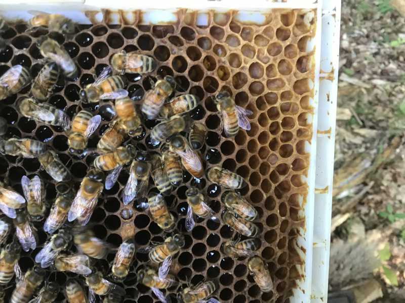 Une des ruches c’était un essaim récupéré et l’autre une ruche que j’ai déplacé