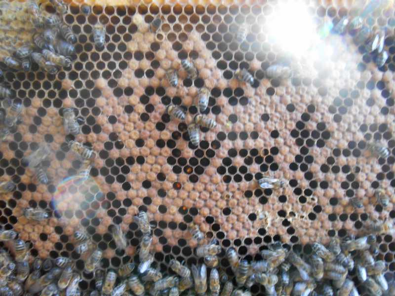C’est l’apiculture, il faut faire des choix et celui-là ne me dira jamais si j’ai eu tort ou raison. Espérons juste que d’ici un mois j’aie une nouvelle reine qui ponde! Mais comme j’ai fait il y a 2 ans le choix inverse et qu’elle a végété ensuite, je me suis dit que la logique voulait que je tue cette reine. Sinon, ce cadre était quasi le plus beau sur les 4. Il y en avait 2 où le couvain s’arrêtait à la moitié.