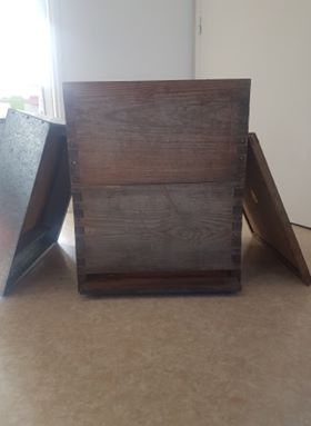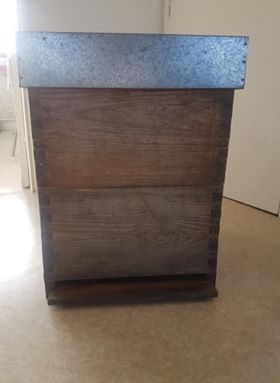 Dimension : 430*430*240 (prendre en que le bois a travaillé avec le temps), ça a l’air de ressembler à une ruche VOIRNOT 10 cadres d’après ce que je trouve sur internet.