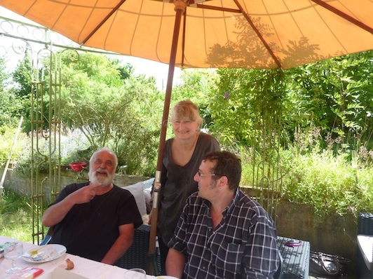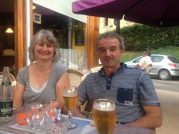 Au programme : visite de quelques-une de ses ruches et repas à St Honoré-les-Bains… Andouillette/frites délicieuses arrosées d’une bonne bière.