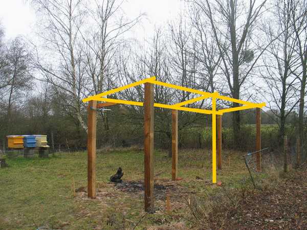 J’ai commencé un rucher couvert (j’ai fais du virtuel pour montrer la suite)