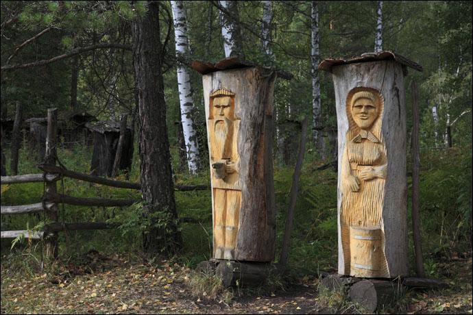 Ruches en Russie (pour effrayer les voleurs de miel, soi-disant) :