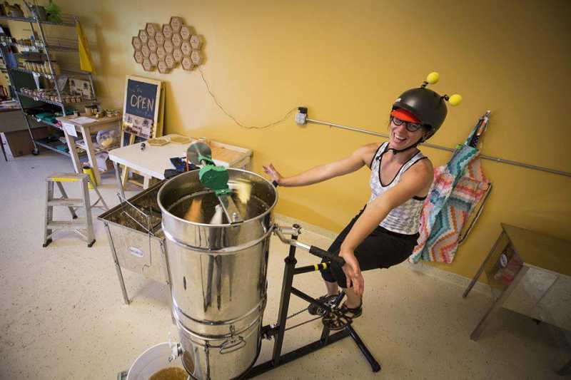 Très bonne idée ce vélo ! L’apiculture c’est du sport ! Rien que de courir après les essaims, soulever les ruches, tourner la manivelle à la main…et là c’est le sport complet ! Heureusement que c’est pour le miel, mais on peut brancher une dynamo et faire chauffer le couteau !!