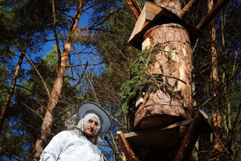 fabrication de tronc ruche en ukraine et il les pendent aux arbres a cause des ours.