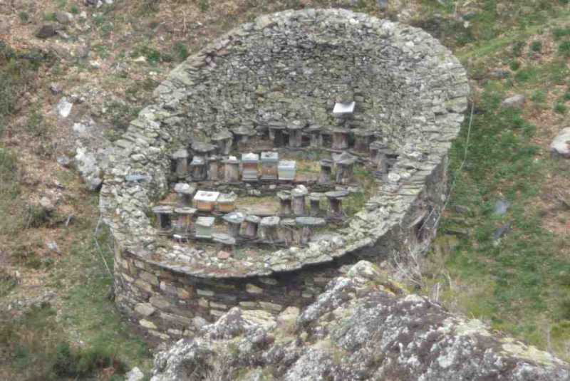 Rucher en pierre construit pour protéger les abeilles des ours en zone de montagne (je n’ai pas noté où c’était, en Espagne sans doute).