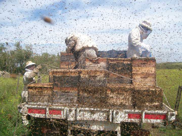 Je sortais les hausse des ruche et un pote venait les chercher et les pilées sur le plateau mais il avais pas bien saisi le concept de recouvrir les piles de hausses!!
