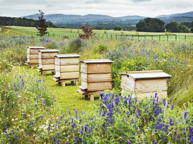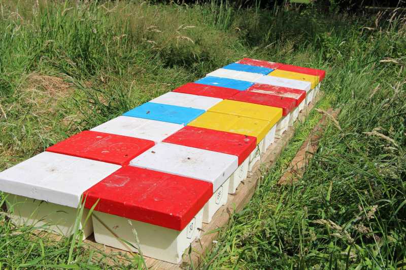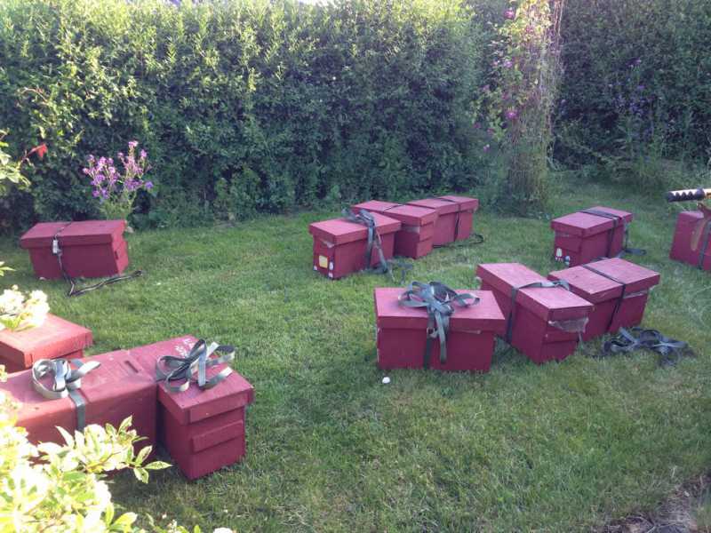 Mais ! c’est le rucher de JR35 avec ses ruches aux toits sanglés !