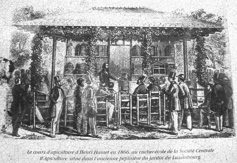 Ruche japonaise, ressemble un peu à la warré. Les abeilles là-bas sont des abeilles plus petites, apis cerana japonica.Oui mais les croisillons, c’est exactement le principe de la ruche-tronc des Cévennes (et les Cévennes, c’est d’ici, d’accord ?)