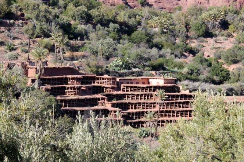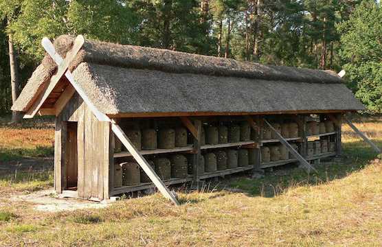 Peut-être que je deviens gâteux… mais je trouve une beauté exceptionnelle dans la correspondance entre les rayons et les renforts entre les deux épaisseurs du boisseau. Alors que depuis l’intérieur du conduit, les abeilles ne peuvent bien sûr pas les voir ! Voici la ruche dans des boisseaux, vue dans son ensemble :    Les gars vous êtes inépuisables Pardon : les filles aussi !  On s’entraîne pour les JO.