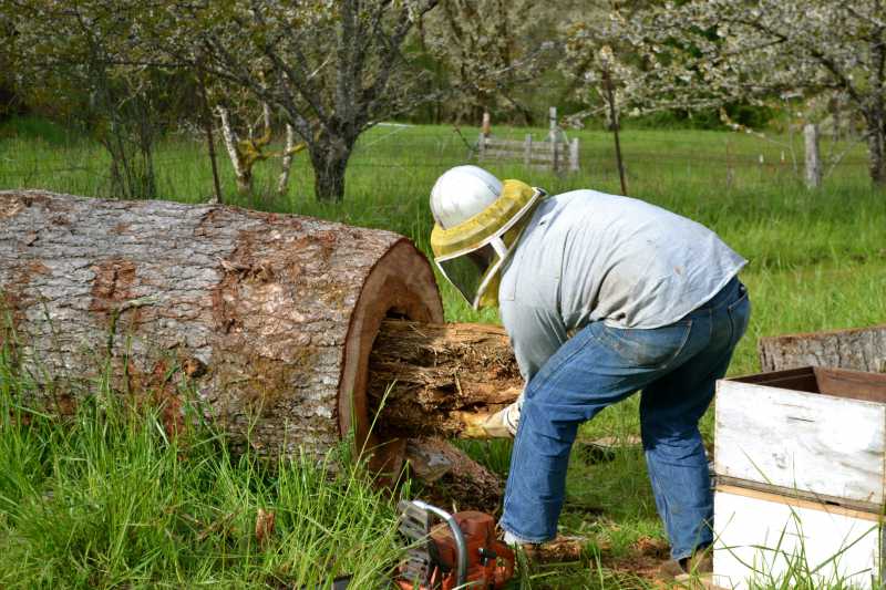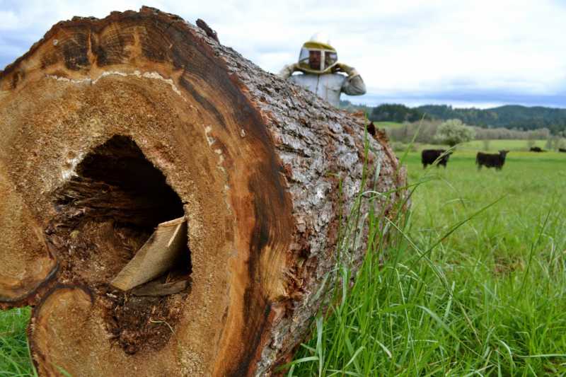 Installed another “landscape apiarium” with log hives – which allows the “onebeeing” to express her birth right of full integrity and natural tissues.