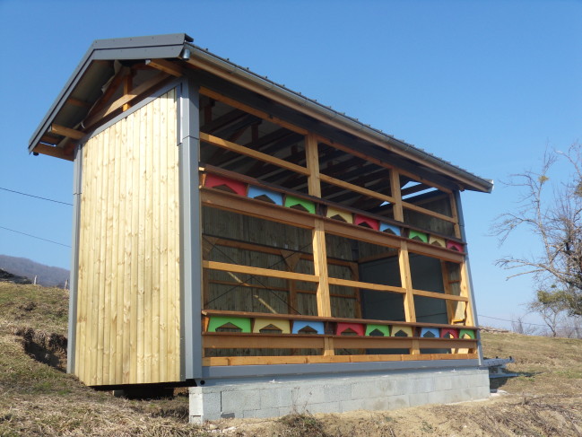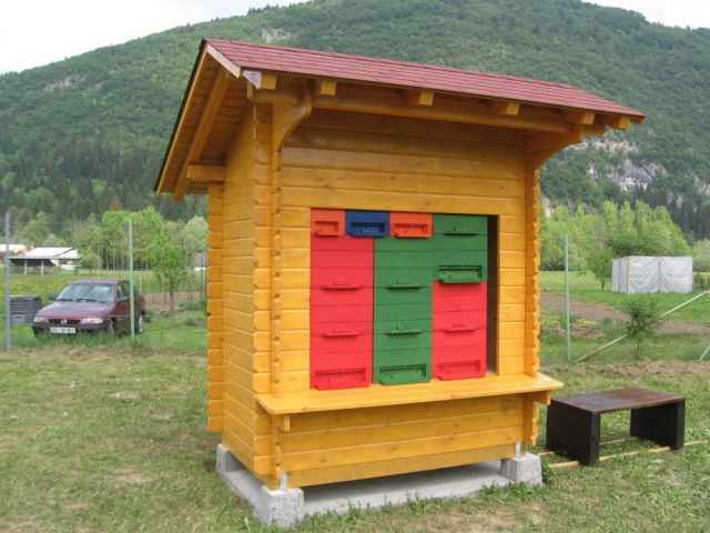 le “onebeeing” c’est un jeux de mot sur one-being = fait d’une seule pièce et one bee-ing l’unique qui mouche (à miel) – l’unique qui abeille en quelque sorte… avec l’idée d’un ensemble totalement naturel, contenant et contenuLa Slovénie est le pays de la liberté pour les abeilles: la construction d’un rucher pavillon de moins de 30 M2 ne nécessite pas de permis de construire. On en rencontre dans tout le pays, parfois dans des petits coins de paradis.