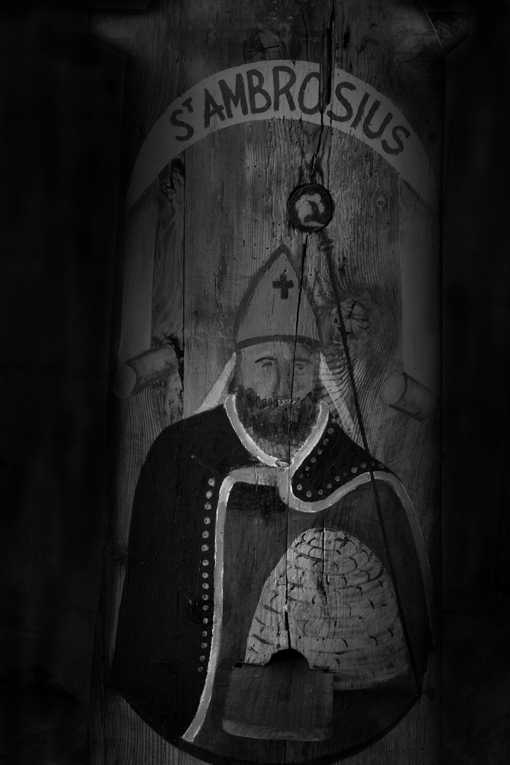 )Petite Histoire… dans de nombreuses régions où les “mouchiers” logeaient leurs abeilles dans des troncs, ils ont peu à peu abandonné cet habitat très peu onéreux mais fastidieux à préparer. On abandonna pas pour autant la forme Tubulaire. On construisit alors des ruches avec des matériaux facile à travailler , on se contentait parfois de quatre planches. C’est ce que l’on fit beaucoup en Allemagne et en Autriche, on perfectionna la planche de devant avec singularité que l’on décora la plupart du temps avec des scènes religieuses. Saint Ambroise y fut souvent mis à l’Honneur…