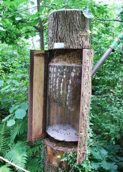 La même ruche avec une porte vitrée pour observer sans déranger.