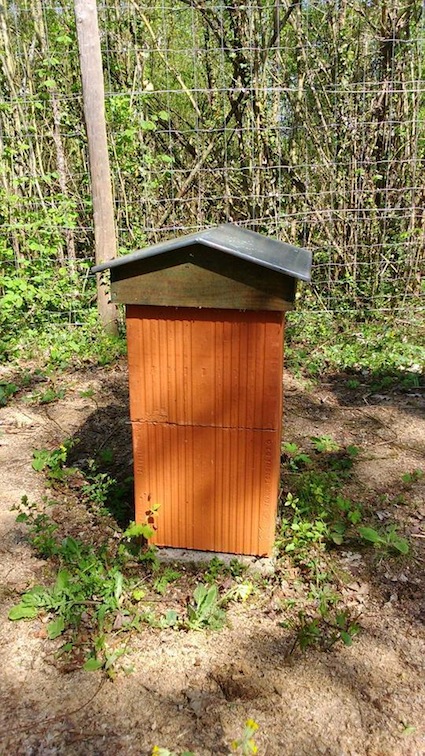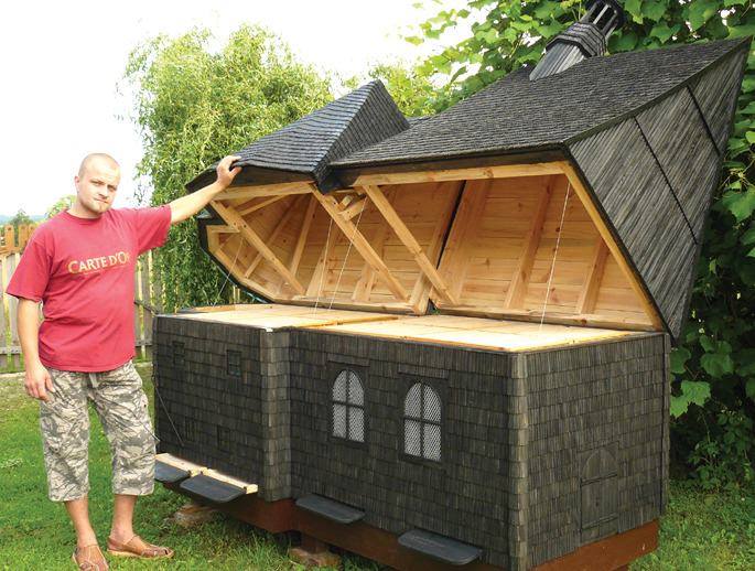 il y a depuis que j ai ouvert mon musée que je voulais faire une ruche chalet surdimensionné au bout du chemin !!